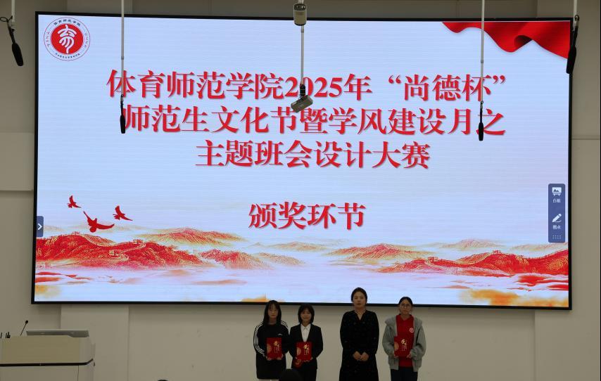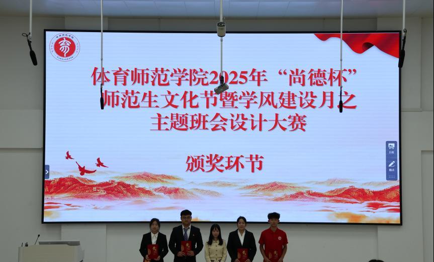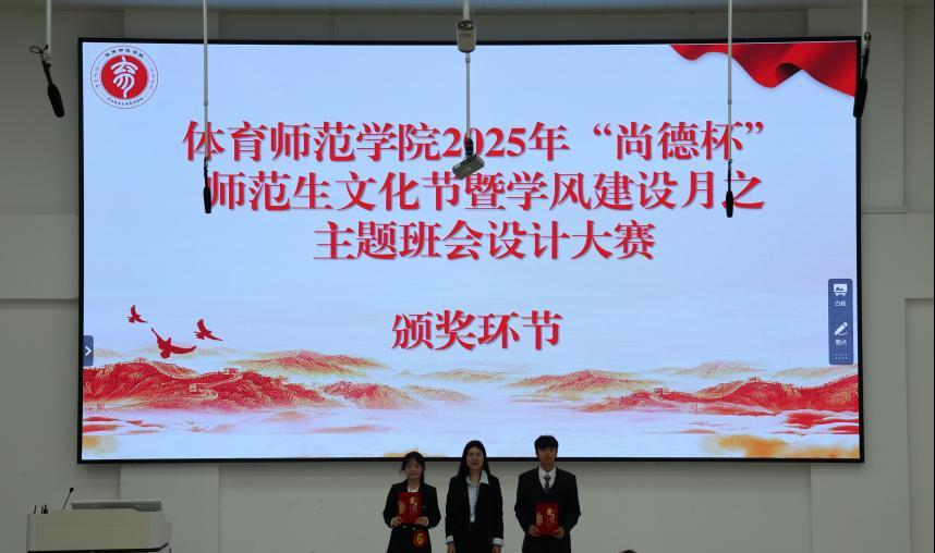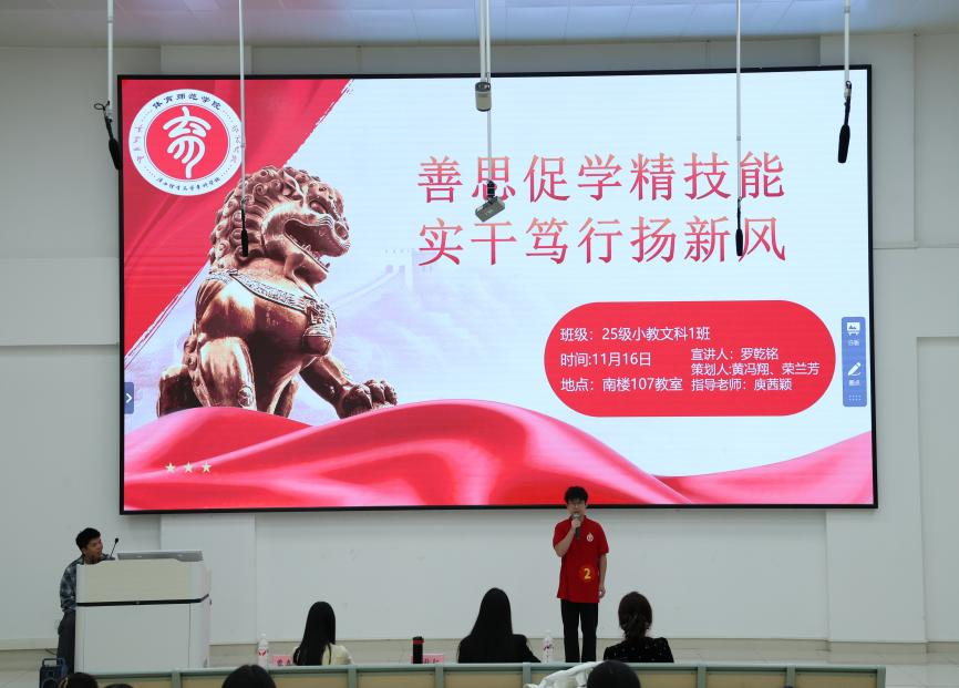 本次主题班会设计大赛聚焦学风建设核心,设计兼具教育性、趣味性与实操性的班会方案,同步开展现场展示;比赛过程高潮迭起,参赛班级各展所长,呈现了诸多创意十足、贴近实际的优秀作品。经过紧张激烈的角逐,2024级体育教育22班以及2025级小学教育(文科)2班荣获一等奖,另有8个班级荣获其他奖项。