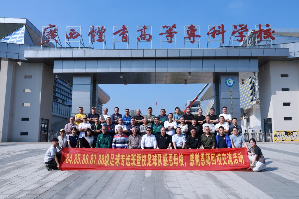 岁月如歌,40年再聚首,携手谱写校友情。11月15日下午,我校84级-88级足球专选班暨校足球队近40名校友回校开展交流活动。学校党委书记韦建勋,广西足球协会会长、学校原党委书记谢强,学校副校长朱晓东以及学校原教师丁永贵、退休教师谢小强、蓝壮旭等热情接待了校友。