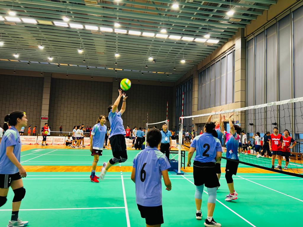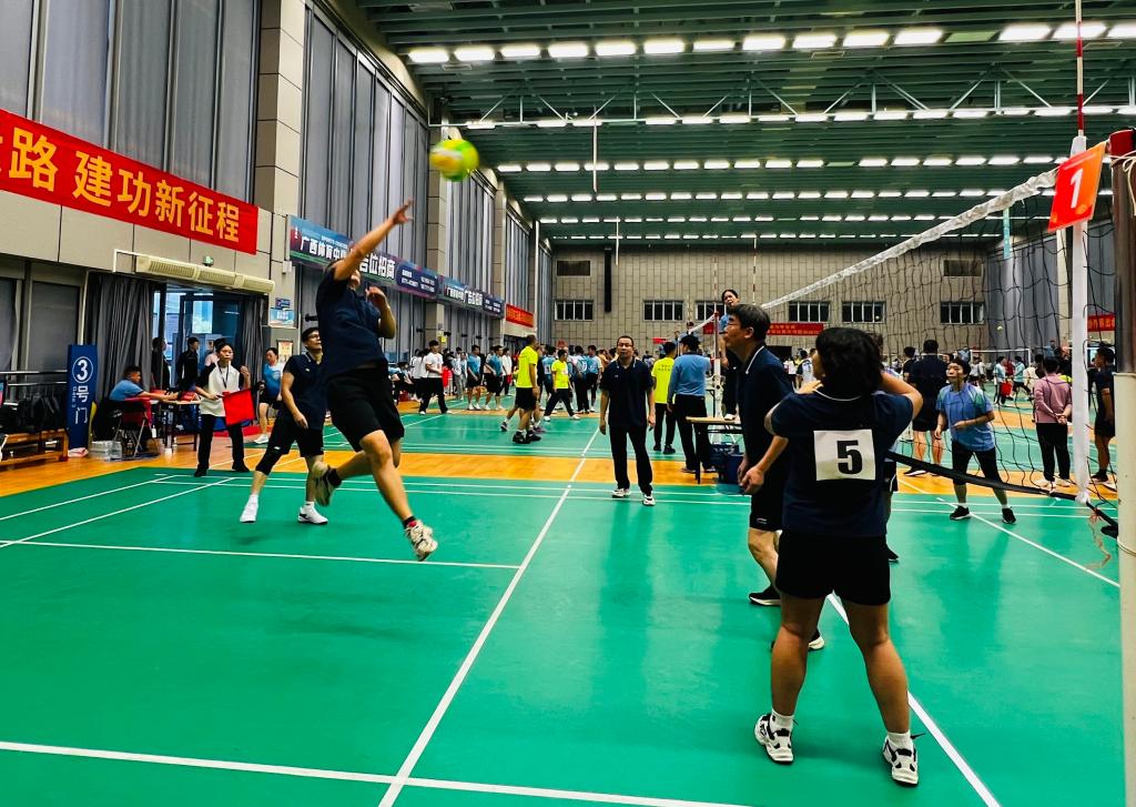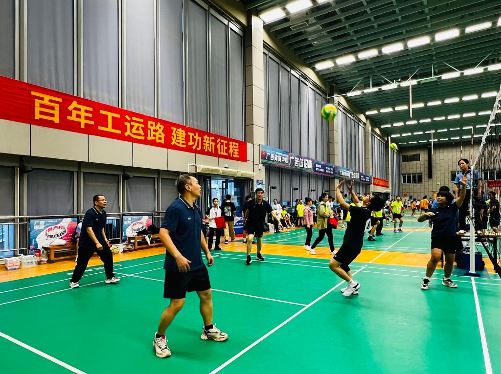11月9日,由自治区教育工会主办的“百年工运路 建工新征程”2025年全区高校教职工气排球比赛在广西体育中心圆满落幕。本次赛事历时3天,吸引全区53所高校组队参赛,我校教职工代表队全面出击,参与男子组、女子组及专职工会干部组全部三个组别角逐。