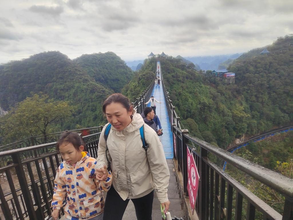 攀岩体验结束后,队伍前往本次秋游的第二站——弄拉景区。作为大明山余脉的核心区域,弄拉以独特的喀斯特峰林地貌闻名遐迩,更因是环广西公路自行车世界巡回赛的“皇后赛段”终点而备受关注。走进弄拉,青山如黛、峰峦叠嶂,成片的绿植覆盖在喀斯特石山上,形成了别具一格的生态景观。教职工们沿着步道漫步,呼吸着清新的山间空气,欣赏着群峰竞秀、溪谷幽深的自然美景,纷纷驻足拍照留念,尽情感受大自然的静谧与壮阔。