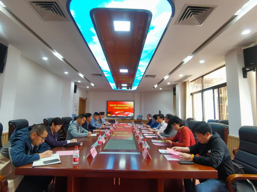 2022年3月7日,广西城市建设学校蒋以明校长一行6人来访我校,我校胡英清校长及学校办公室、教务科研处等部门领导热情接待来访团,并在学校综合楼第一会议室召开座谈会。