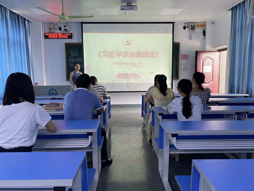 9月15日,党支部书记时丹在501教室给校办党支部党员上了题为《习近平谈治国理政》的党课。