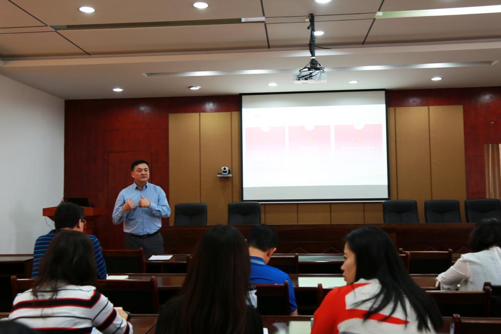 11月8日上午,我校综合楼七楼报告厅举行《“不忘初心、牢记使命”主题教育专题党课》活动,邱团副校长为学校办公室、学工处、工会、图书馆全体党员上了一堂精彩的专题党课。