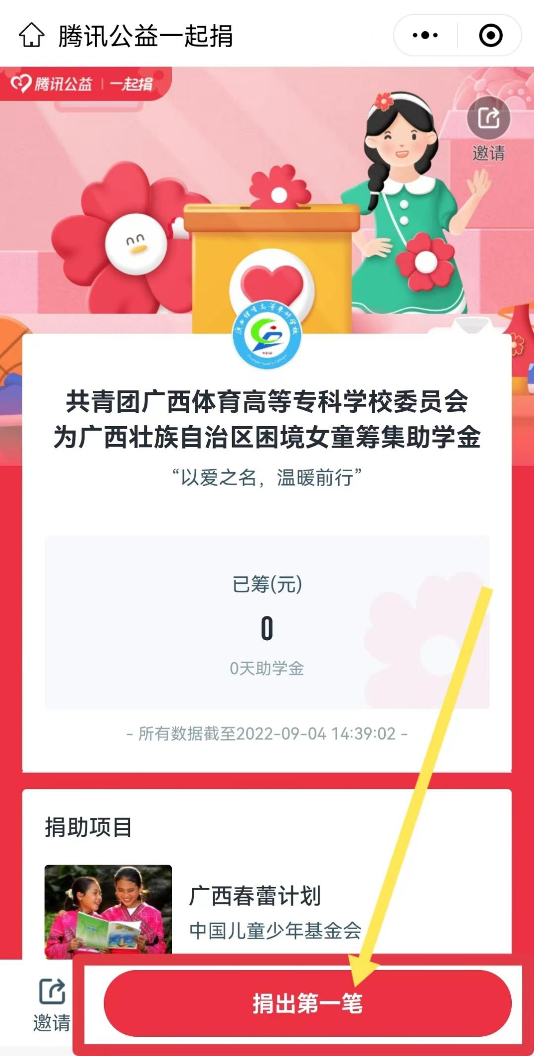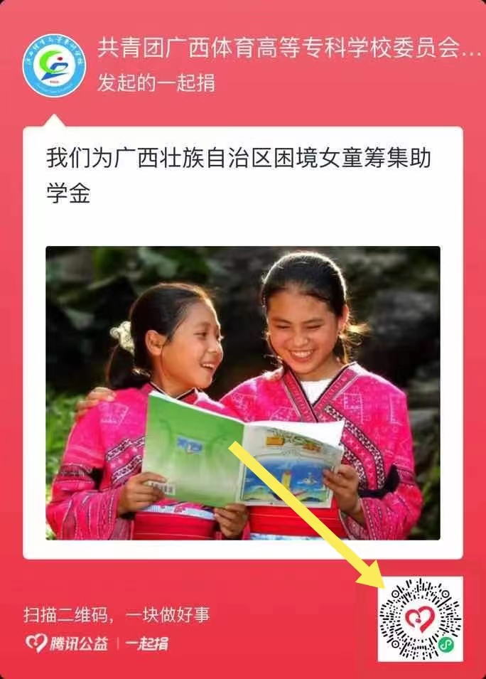 为巩固拓展脱贫攻坚成果,助力乡村振兴,帮助因各种原因陷入困境的女童顺利完成学业,共青团广西体育高等专科学校委员会在“99公益日”(2022年9月7日--9月9日)诚邀全体师生、社会各界爱心人士为广西壮族自治区困境女童伸出援手,奉献爱心,以小善凝聚大爱,以行动温暖万家,共同为儿童事业健康发展贡献自己的力量!