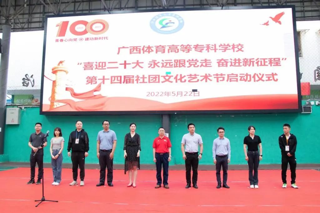 5月22日,“喜迎二十大 永远跟党走 奋进新征程”第十四届社团文化艺术节启动仪式在公园路校区篮球馆内举行。学校党委副书记李爱民,校团委书记黎智达、副书记韦宛辰、兼职副书记程鹏瑜,各学院团委书记,校团委干事及社团指导老师代表、全校25个学生社团近300名社团代表出席了启动仪式。