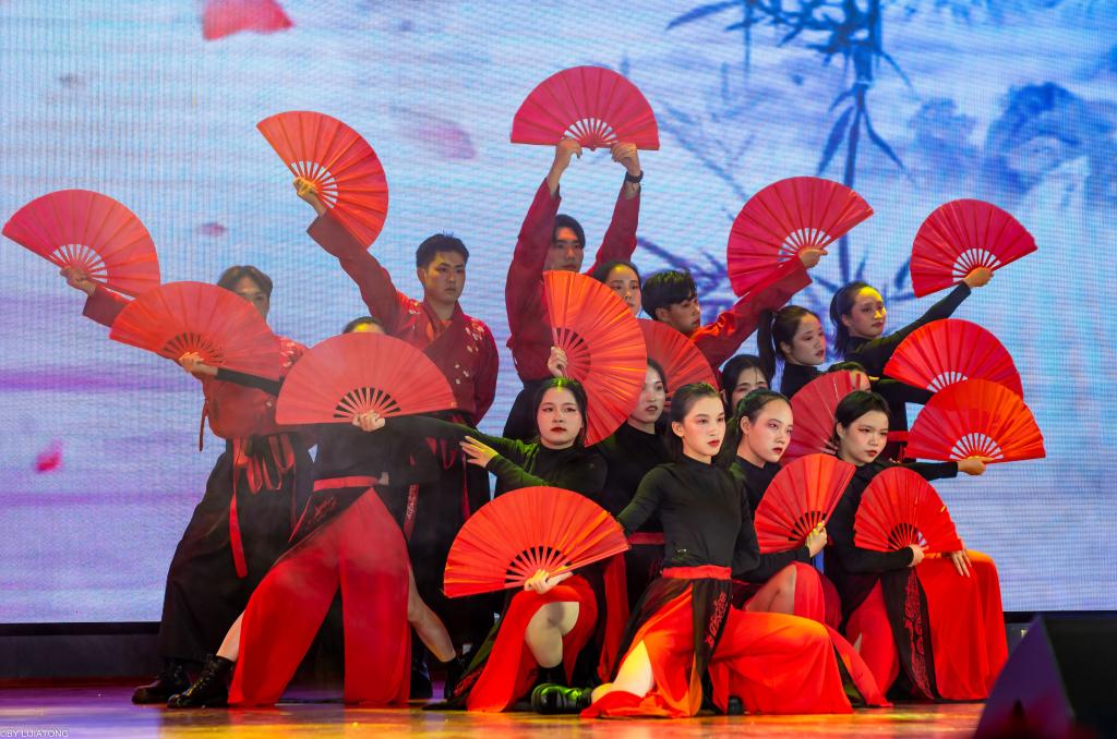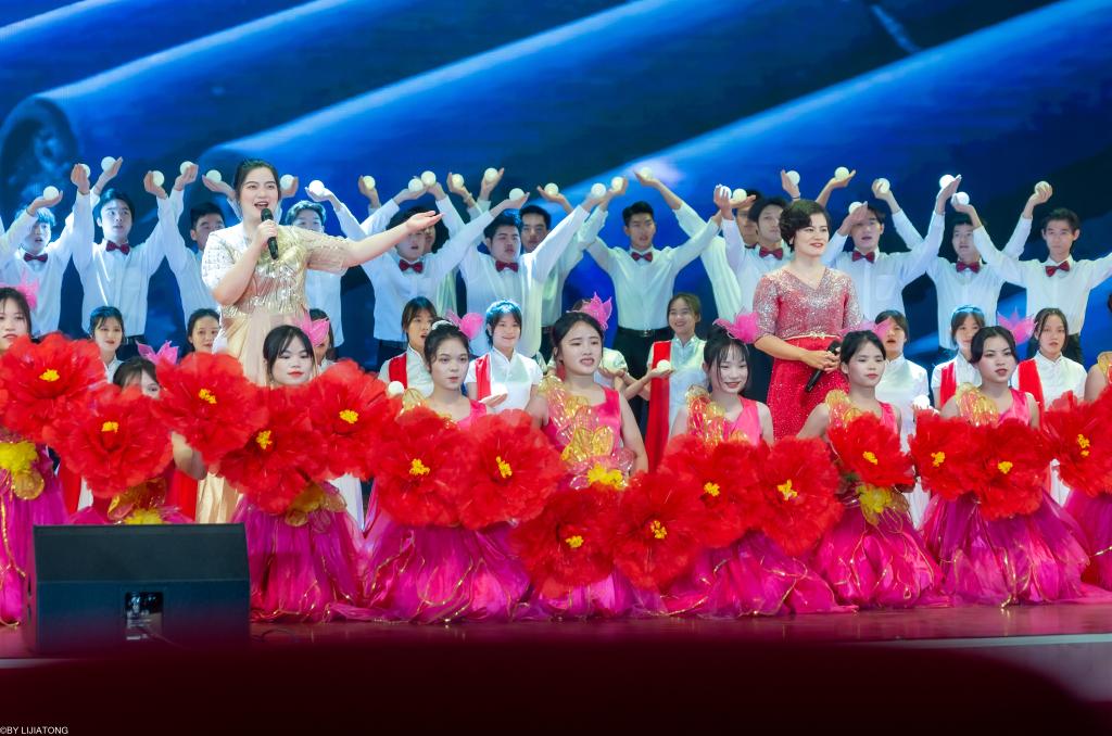 歌伴舞《天耀中华》唱出莘莘学子匠心筑梦、共同创造祖国更加辉煌灿烂明天的美好愿景,为晚会画上圆满的句号。晚会节目涵盖技能展示、舞蹈、歌伴舞、乐队演唱、快板、朗诵等,通过丰富多样的表演形式展现了体专学子积极向上、一往无前的良好风貌。