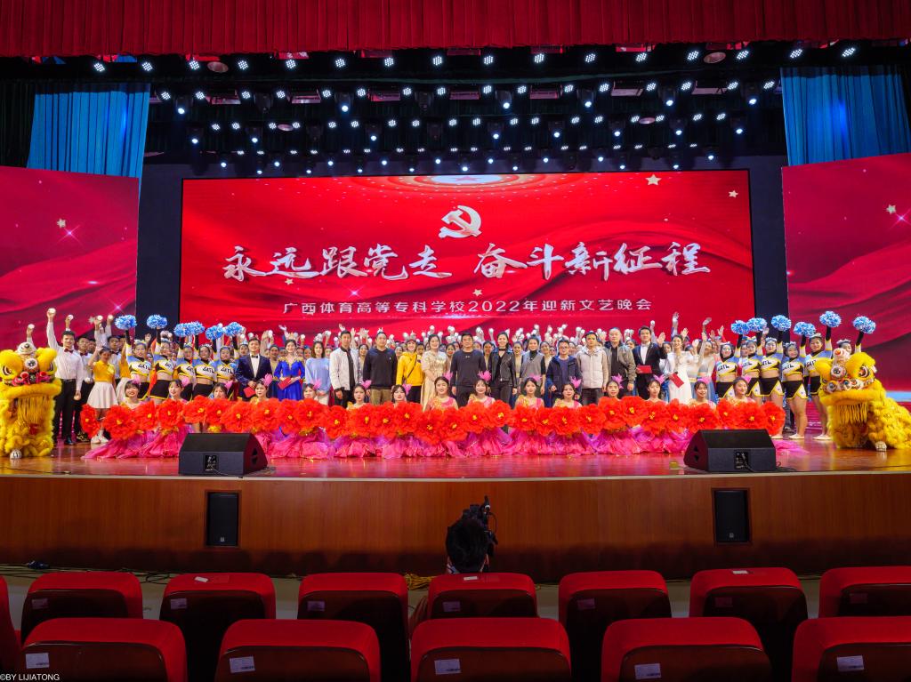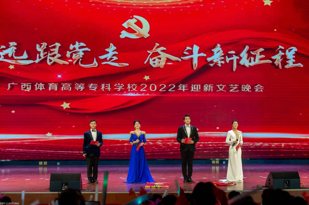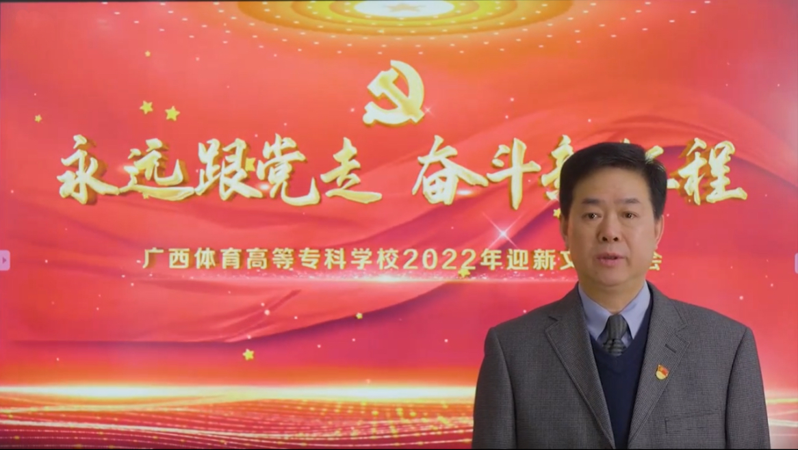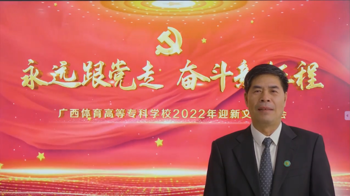 晚会开始前,学校党委周璋斌书记向全体师生员工以及所有关心支持广西体育高等专科学校事业发展的各界朋友表达了诚挚的问候和美好的祝愿,周书记的致辞回顾总结了2021年学校各项工作取得的成绩,并表示2022年将是学校发展的关键之年,愿我们不忘初心、牢记使命,埋头苦干、勇毅前行,共同开创广西体育高等专科学校更加美好的明天,以优异成绩迎接党的二十大胜利召开。随后,胡英清校长向全体师生致以新年贺词,祝愿每位同学学业有成,每位教师喜悦幸福。祝福我们学校成为学生喜爱向往的地方,校园生活的每一天都为生命的绽放而美丽芬芳。