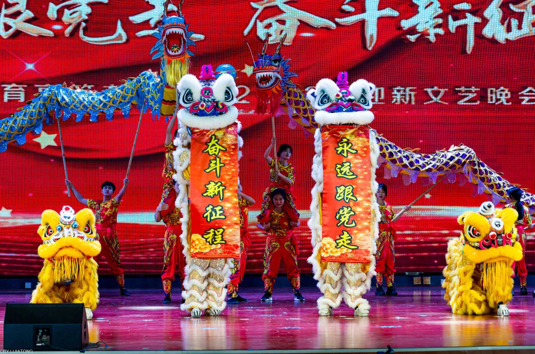 本次迎新文艺晚会紧扣“永远跟党走·奋斗新征程”这一主题进行,在充满浓浓欢庆氛围的《龙狮送福》开场表演中拉开帷幕。晚会分为三个篇章,第一篇章“筑梦青春”:活泼灵动的舞蹈《青春骊歌》讲述了学子对母校的依恋和感激以及当代新青年对美好未来的憧憬;花样跳绳技能展示《绳采奕奕》令人眼前一亮,精彩的演出充分体现了拼搏、合作的体育精神,演员们完美的配合、娴熟的技术为观众们带来了一场视觉盛宴。第二篇章“礼赞百年”:舞蹈《灯火里的中国》用青春的脚步、优美的舞姿为中国共产党百年华诞献礼,舞出中国人民的中国梦、舞出新时代的新征程;《礼赞建党一百年》以快板表演的形式,满怀热情地表达了对中国共产党建党百年的祝福。第三篇章“锦绣前程”:精彩的武术表演《中华·壮拳》带领大家领略了中华民族传统文化的神韵与气质;朗诵《请党放心 强国有我》用青年最真挚的声音对未来许下的铮铮誓言,以饱满的热情和昂扬的斗志展望体专更美好的未来。