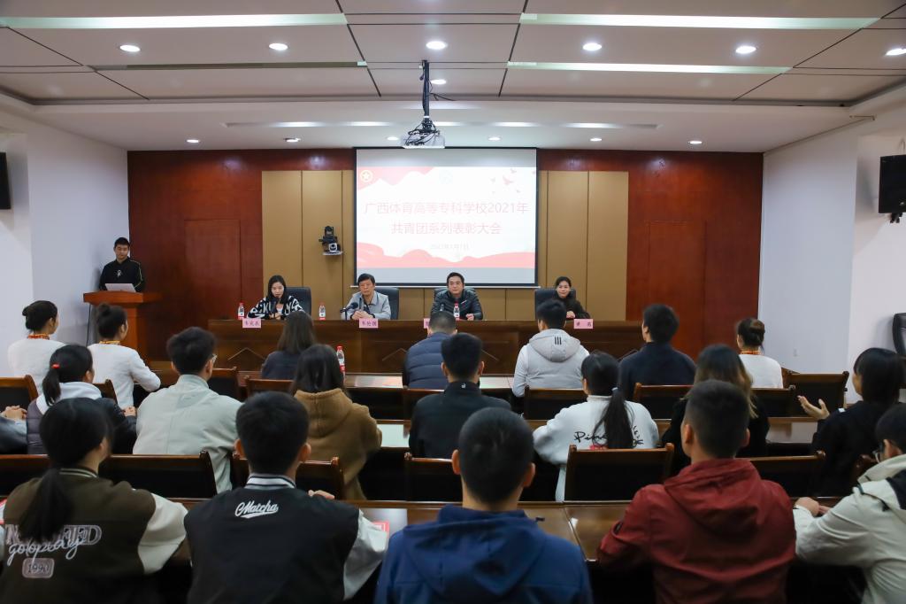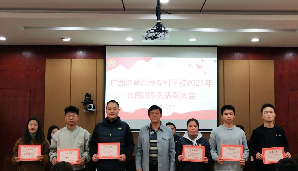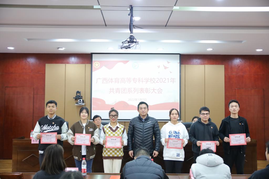 会上,由韦伦国处长、黎智达书记、黄茜部长分别宣读《关于广西壮族自治区2021年度社会实践活动的通报》、《关于表彰2020年度广西体育高等专科学校共青团先进集体和先进个人的决定》、《关于表彰2021年度广西体育高等专科学校志愿者优秀个人奖的决定》,并举行共青团系列表彰颁奖仪式。