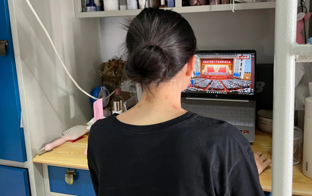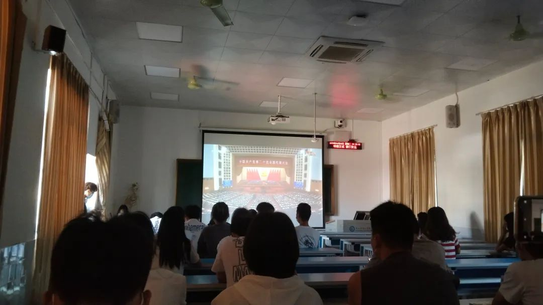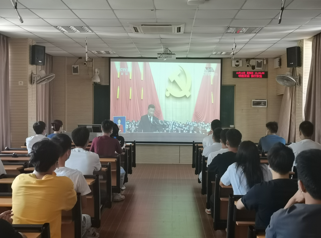 学校师生如同身在大会现场,与大会代表一同起立唱响国歌,一同为先辈英烈默哀,认真聆听习近平总书记的报告。