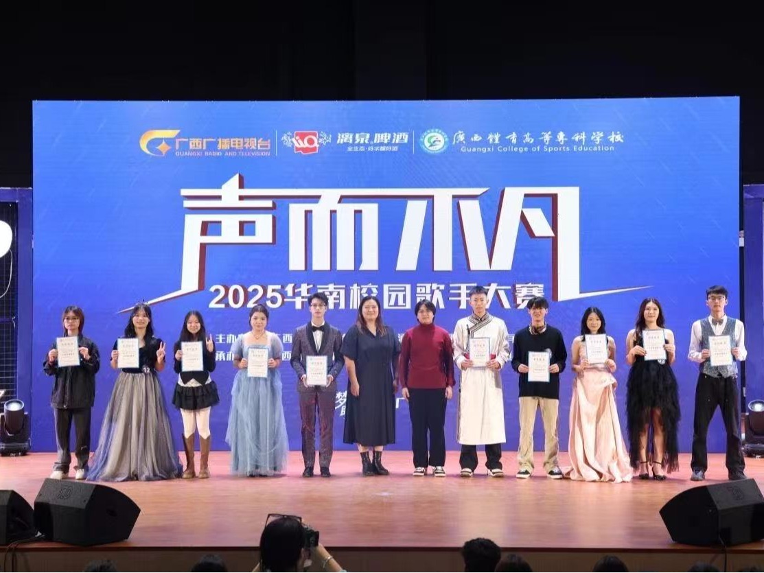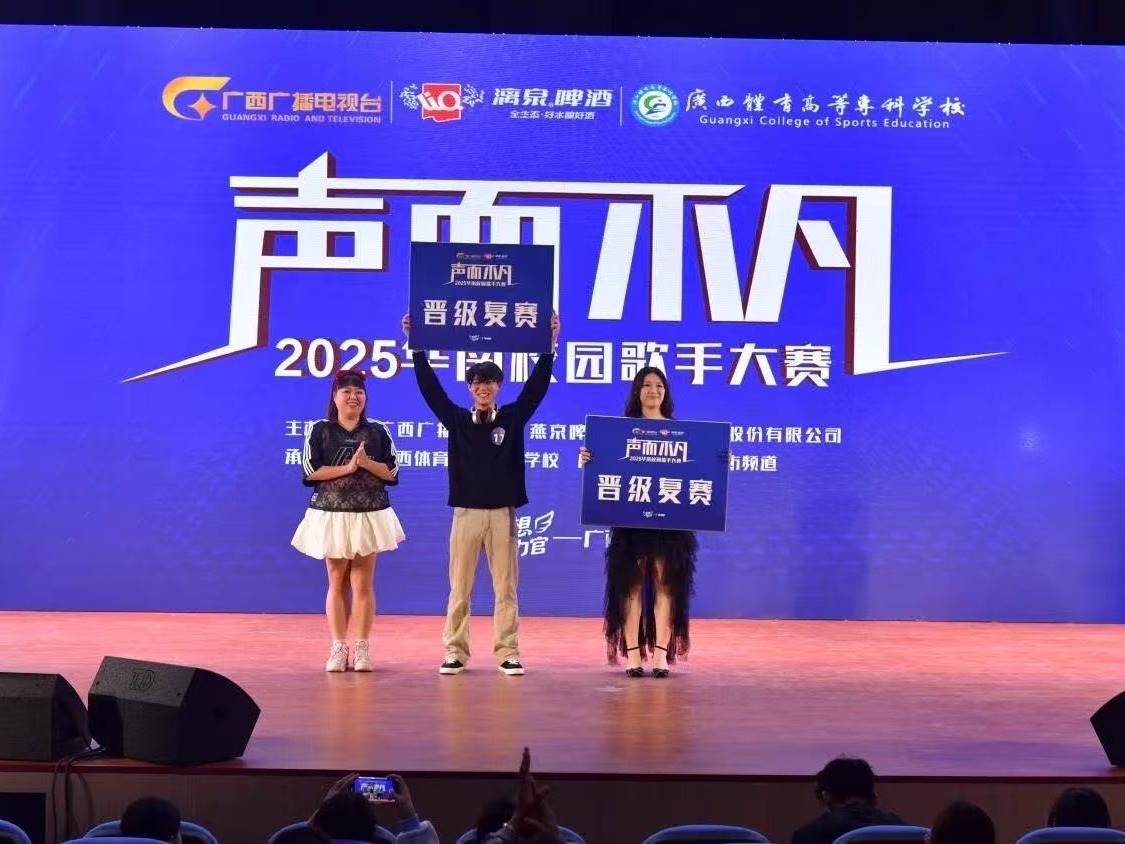 11月5日至6日,由广西广播电视台都市频道与我校联合举办的“声而不凡”2025华南校园歌手大赛暨广西体专校园十佳歌手大赛,在我校相思湖校区圆满落下帷幕。校园选出50名实力选手参加初赛,分两场在学校大礼堂的舞台上绽放音乐魅力。专业评委及1200余名师生现场观赛,线上直播超万人次观看,共同欣赏这场青春与旋律交织的视听盛宴。