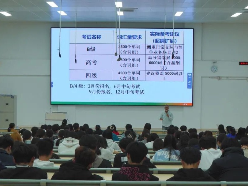为帮助同学们明确英语B级考试方向,掌握高效备考策略,近日,由英语协会主办的“英语B级备考精准指导与高效冲刺应试能力”专题讲座在相思湖校区北教学楼101教室成功举办。现场吸引了超过300名学生参与,气氛热烈。