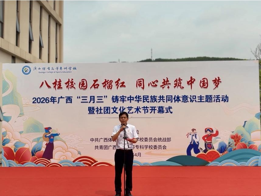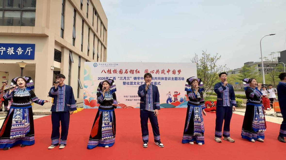 4月15日,我校2026 年广西“三月三”铸牢中华民族共同体意识主题活动暨社团文化艺术节在校园成功举办。本次活动以“八桂校园石榴红 同心共筑中国梦”为主题,将民族文化、传统体育深度融合,营造了团结奋进、喜庆祥和的校园氛围。