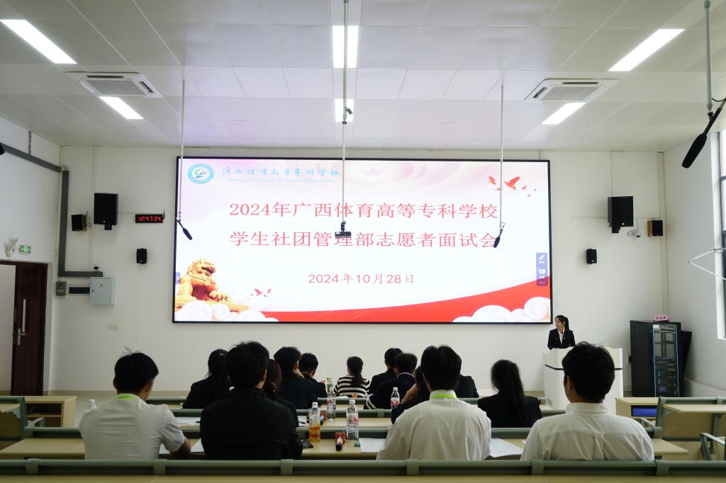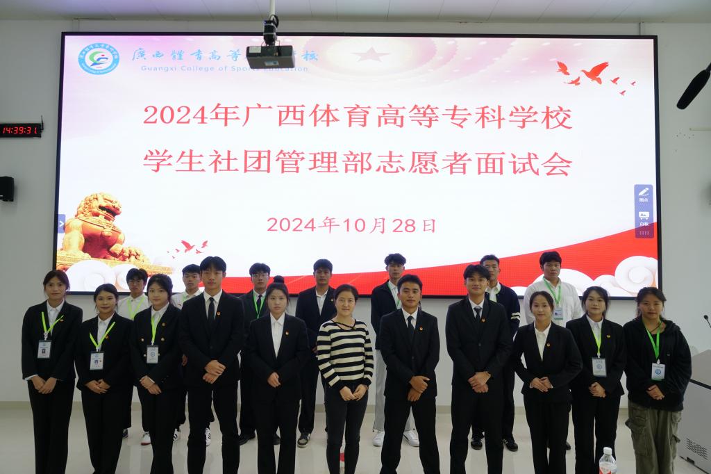 为进一步完善学生社团管理部的组织体系,提高学生综合素质,引进新鲜血液,保证工作的连续性,广西体育高等专科学校团委学生社团管理部于2024年10月28日在南楼303教室顺利完成对2024级新生的招新面试。