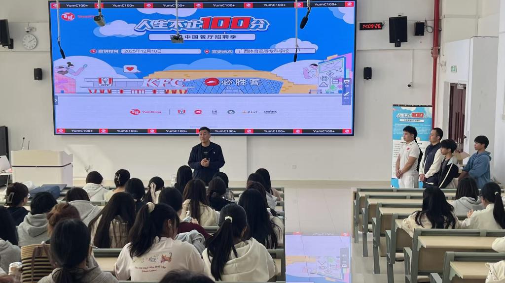 为深化校企合作内涵,搭建品牌与专业人才的精准对接桥梁,12月10日下午,南宁肯德基有限公司“烹然心动,职属于你”食品营养与健康人才启航课堂宣讲会在南101阶梯教室顺利举办。运动健康学院党总支部副书记张伟、食品营养与健康专业负责人杨媚及专业课教师磨正遵出席活动,肯德基广西市场人力资源负责人罗丽宁、餐厅经理代表、招募团队组成宣讲团,食品营养与健康专业近100名学生参加。