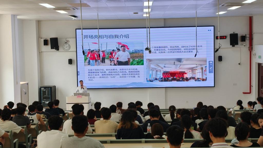 宣讲中,凌展鸿结合自身经历,分享了从校园到乡村、从创业到治村的成长心路。他回顾了在校期间参与社会实践的收获,讲述了创业初期的艰辛与坚持,以及担任村支书后服务百姓、建设家乡的点滴感悟。他勉励学弟学妹珍惜在校时光,夯实专业基础,勇于到基层一线磨砺成长,将个人理想融入时代发展。