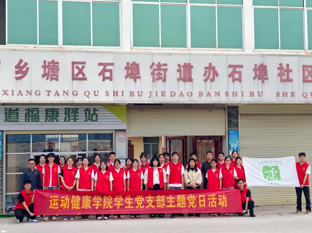 金秋送爽,丹桂飘香。在重阳佳节来临之际,为弘扬中华民族尊老、敬老、爱老、助老的传统美德,2025年10月29日,我校运动健康学院团委、学生党支部组织“体卫先锋”志愿服务队与学校康复协会共30名志愿者,联合石埠街道办石埠社区,走进南宁市一孝石埠护老院,圆满举办“康复重阳•青春伴银龄”主题志愿服务活动。运动健康学院团委书记李常军、副书记黄广霞老师带队参与。