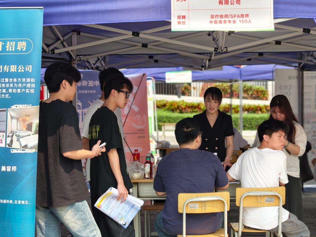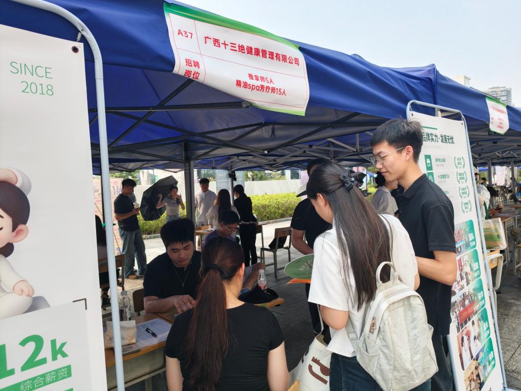 为深入贯彻落实《教育部关于做好2026届全国普通高校毕业生就业创业工作的通知》精神,按照学校“每季度组织开展小而精、专而优的小型专场招聘活动1次以上”的具体要求,4月13日,广西体育高等专科学校运动健康学院联合南宁市卫生学校,共同举办2026年春季校园招聘会。本次招聘会邀请80余家用人单位进校揽才,学院副书记张伟、2023级辅导员李常军、凌迎娣、黄广霞及2024级辅导员王桂杰全程组织学生参与,实现毕业生求职与在校生实习准备“双线并进”,取得良好成效。