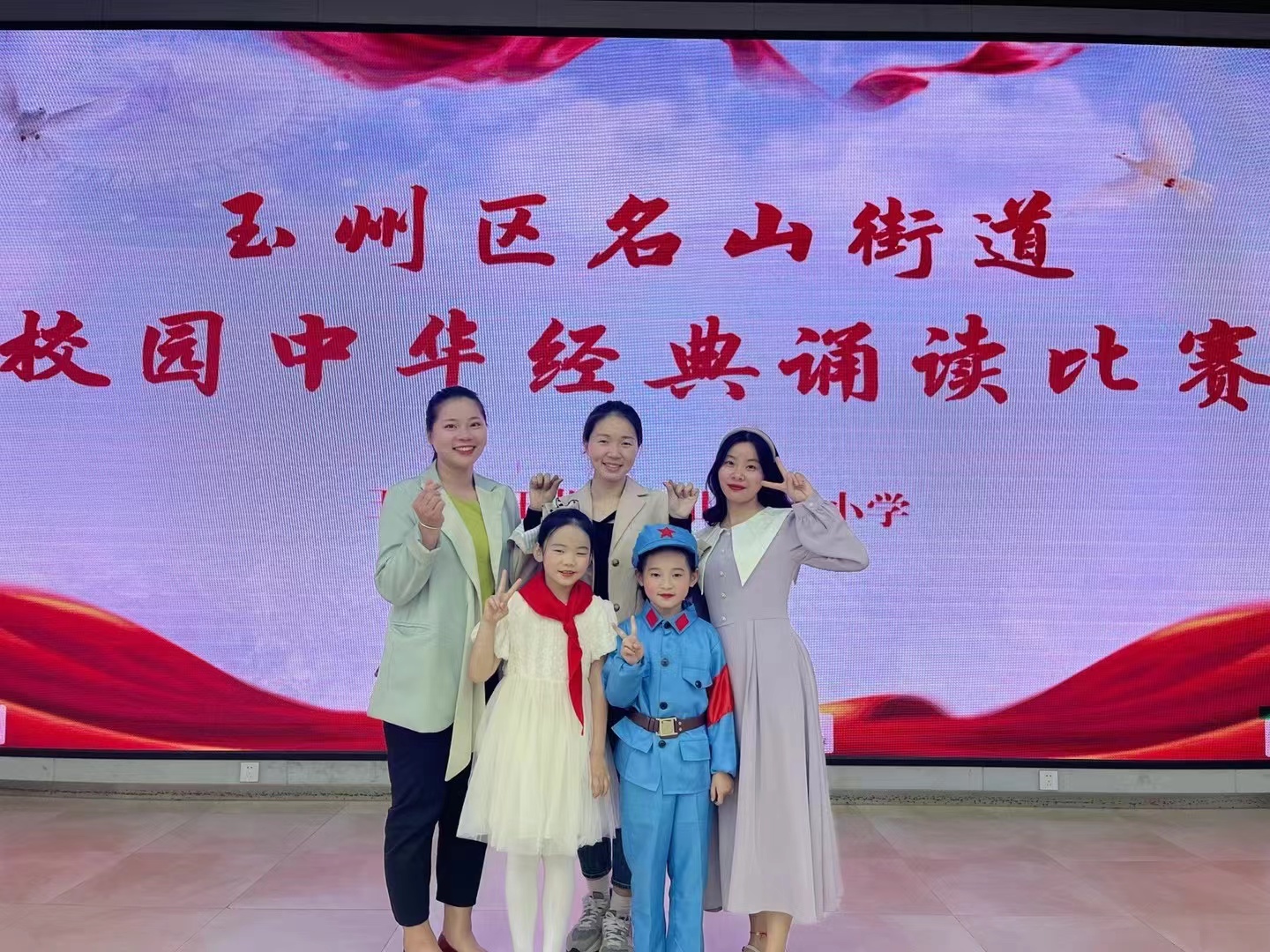 2023年3月参加玉州区名山街道校园中华经典诵读比赛(后排左一)