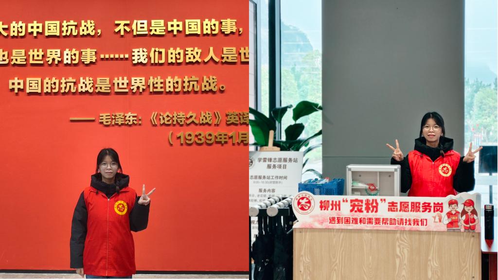 在军事博物院,陈柳彤同学作为校“青马工程”致远班学员,化身文明劝导志愿者。“志愿服务不仅是维护秩序,更是传递红色力量,让更多人感受革命精神。”在马山县,黄晶晶同学作为院“青马工程”学员参与冬令营、春运暖冬行动、“河小青”护河行动等,累计服务120小时,“基层的孩子同样渴望学习、渴望陪伴,这让我更加坚定了为家乡青少年成长贡献力量的决心。”