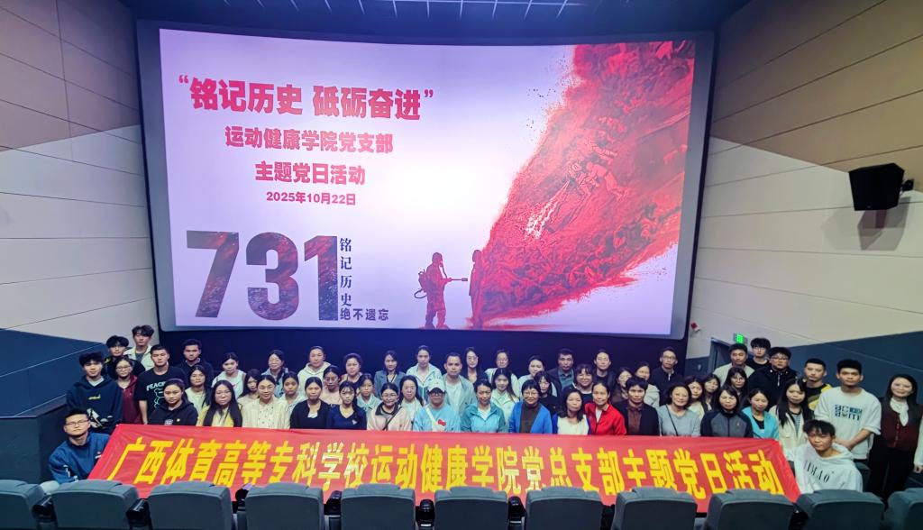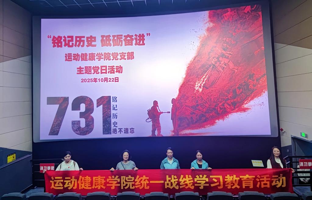 为赓续自立自强的中华民族精神,从中国共产党领导全民族众志成城英勇抗战的伟大胜利中汲取智慧和力量,进一步激发全体师生党员的爱国情怀与使命担当,并广泛凝聚共识、巩固爱国统一战线,运动健康学院党总支部于10月22日组织全体教师和学生党员,共同开展了以“铭记历史 砥砺奋进”为主题观看红色影片《731》 的主题党日活动。