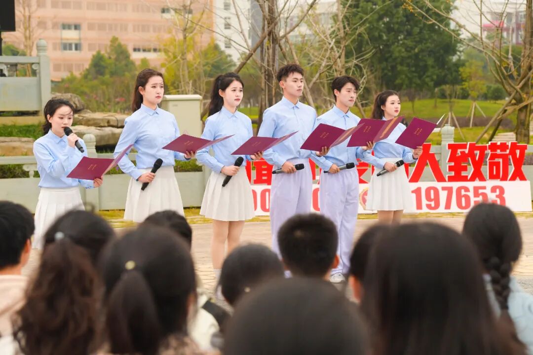 广西师范大学党委书记贺祖斌在致辞中深刻阐述了上好思政课的重要意义,并重点介绍了广西师范大学通过改革课堂教学模式、创新思政教育载体、开发思政实践平台等举措,扎实推进“大思政课”建设的具体做法和取得的积极成效。他寄语青年学子要承先辈之志,以史立信,坚定爱国情怀;以史铸魂,传承英雄精神;以史明志,勇担时代大任,努力成为推动实现中华民族伟大复兴的先锋力量。