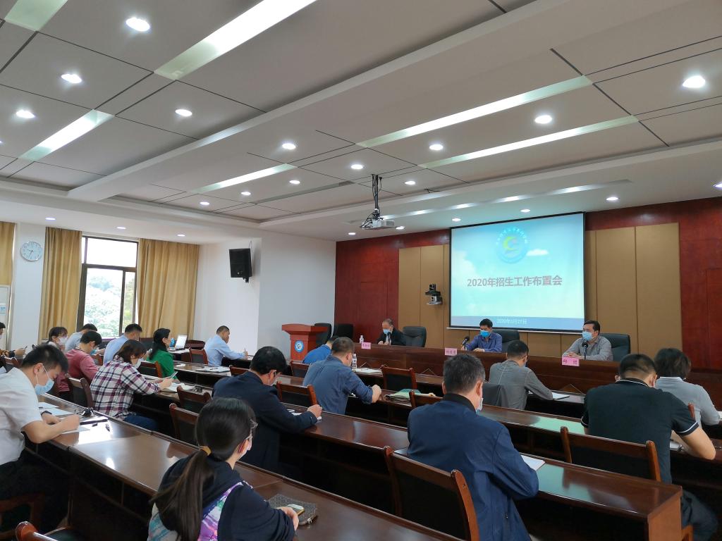 胡英清校长对学校2020年招生工作进行总体部署,要求各部门要认清形势,高度重视,认真落实学校党委和行政有关招生工作的要求,转变思维,变被动为主动,力争实现学校2020年招生工作稳中有升。一要认真清形势,凝练特色,打造自身招生品牌;二要高度重视,深入研究,树立招生工作责任意识;三要充分挖掘,用好多方资源,拓宽招生渠道;四要创新方式,合理安排,深入开展招生宣传;五要深化改革,推进招生工作制度化、系统化和科学化。