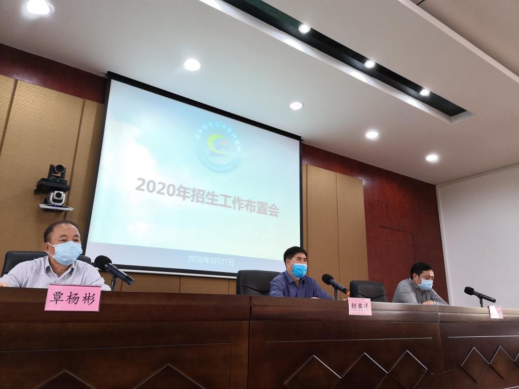为做好学校2020年招生工作,3月27日上午,学校在7楼报告厅召开2020年招生工作布置会。胡英清校长,覃杨彬副校长和邱团副校长出席会议,各机关部门主要负责人、各学院党总支书记、院长,招生就业处全体人员参加会议。会议由覃杨彬副校长主持。