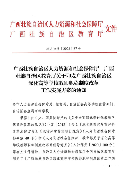 附件【桂人社发〔2022〕67号广西壮族自治区人力资源和社会保障厅广西壮族自治区教育厅关于印发广西壮族自治区深化高等学校教师职称制度改革工作实施方案的通知[1].pdf已下载